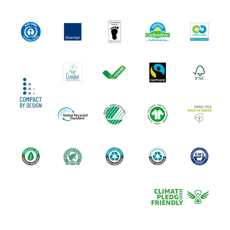 Amazon ha collaborato con certificazioni di terze parti riconosciute e i clienti possono così trovare prodotti che soddisfino gli standard di sostenibilità progettati per supportare la salvaguardia dell’ambiente. Il Climate Pledge Friendly prevede una vasta gamma di certificazioni a livello globale a cui Amazon ha aggiunto anche le certificazioni europee EU Ecolabel, Blue Angel e Nordic Swan, che certificano i prodotti sostenibili e quelli che supportano l'economia circolare. Amazon sta lavorando con altre società di certificazione e brand per incrementare la selezione di prodotti Climate Pledge Friendly.